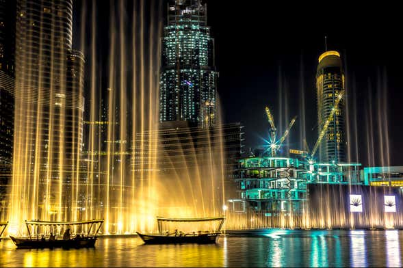 Neste passeio de barco de 30 minutos, você atravessará as águas do lago Burj para contemplar sua magia de perto. Dos seus assentos, você terá as melhores vistas do espetáculo de luz e som da Fonte de Dubai. Este show combina um total de 6.600 holofotes e 50 projetores coloridos que iluminam a água.